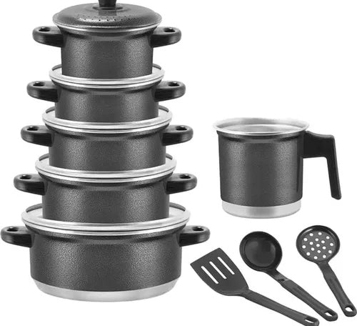 O Jogo Completo de Panelas em Alumínio com Talheres é ideal para quem busca montar ou renovar a cozinha com utensílios práticos, duráveis e de uso diário.