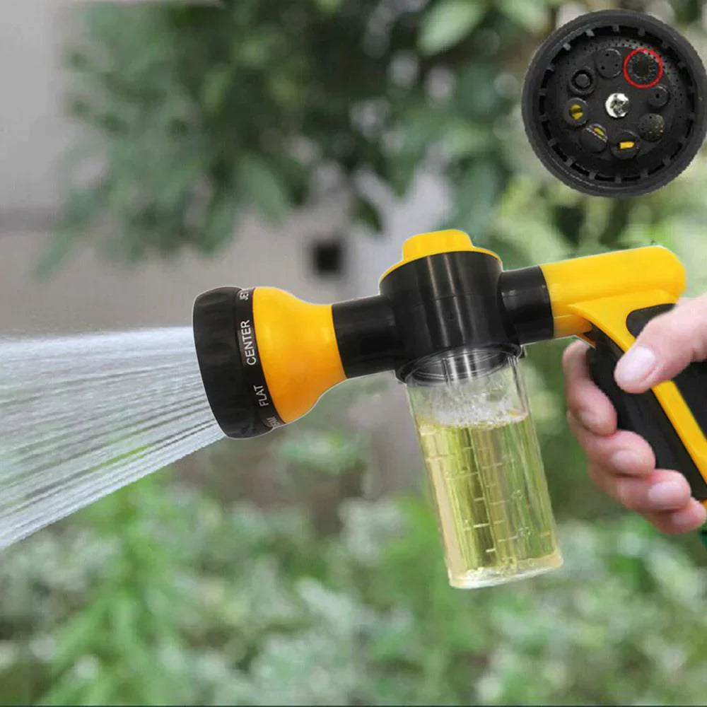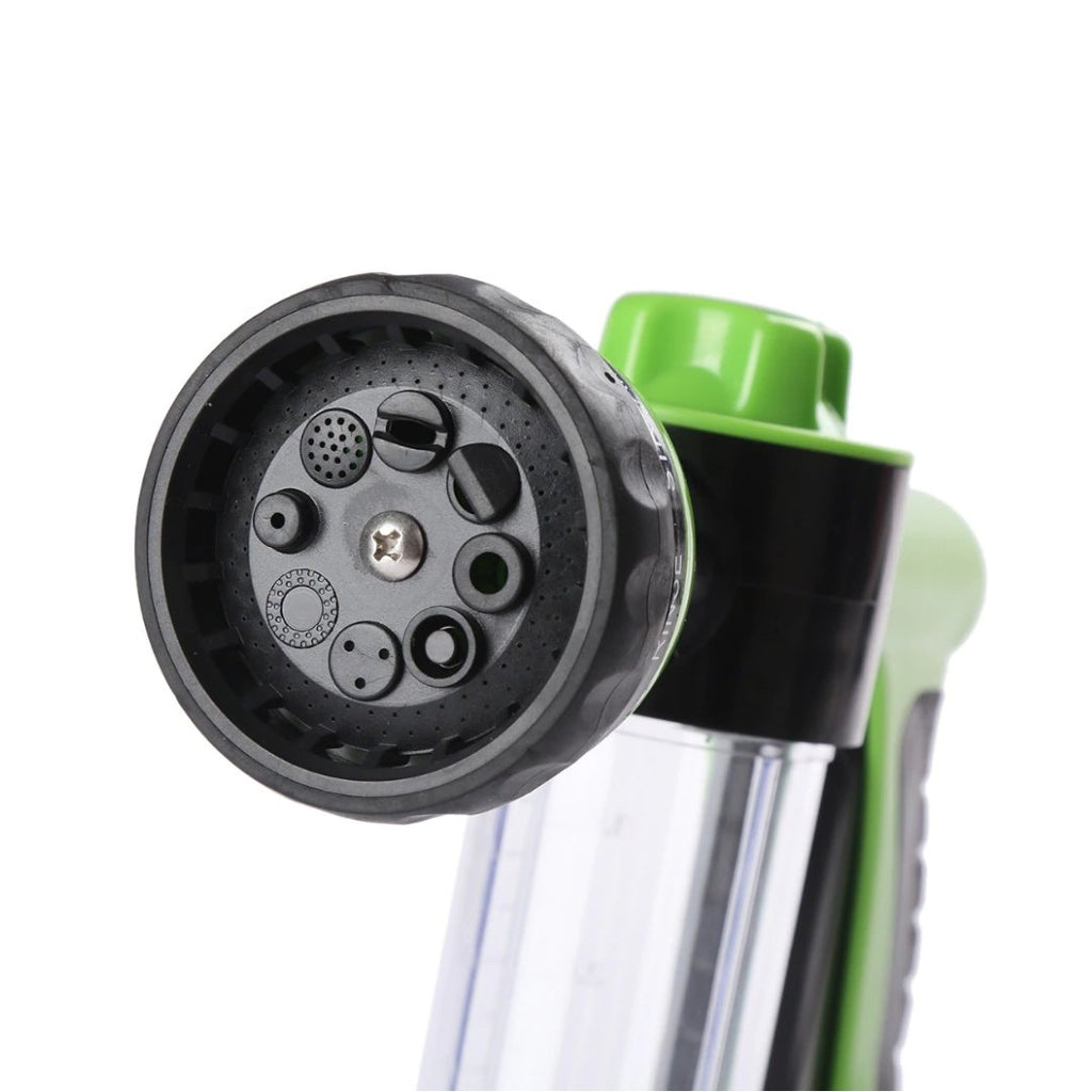 Simplesmente conecte à sua mangueira de uso diário, encha o dispensador com shampoo/sabão e deixe a mágica acontecer. (Existe um modo apenas para água e outro para água + shampoo/sabão) .