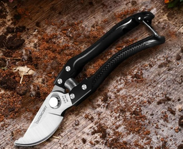 A Tesoura é feita com aço inoxidável de titânio chapeado, o que garante uma proteção extra contra a corrosão e uma vida útil ainda mais longa. Com ela, é possível cuidar do jardim de forma precisa, eficiente e sem complicações.