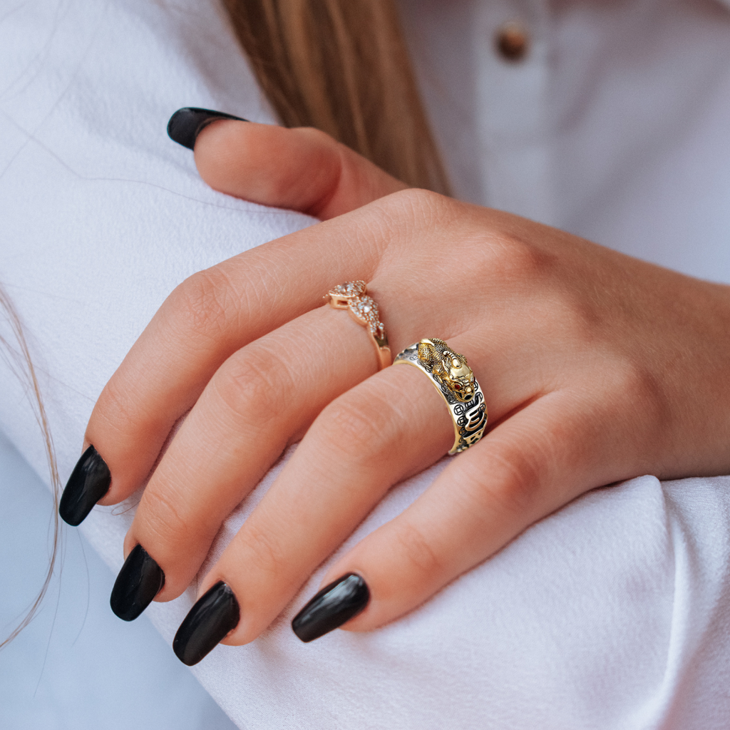 Este anel é um talismã poderoso para trazer riquezas para a casa ou local de trabalho. Pi Xiu é especialmente popular entre empresários, investidores e jogadores na Ásia. É considerado um atraente dominante de dinheiro.