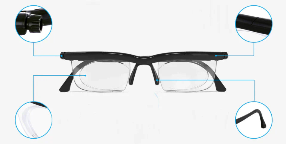 ✅ Vidros ajustáveis contendo 2 partes móveis por lente.